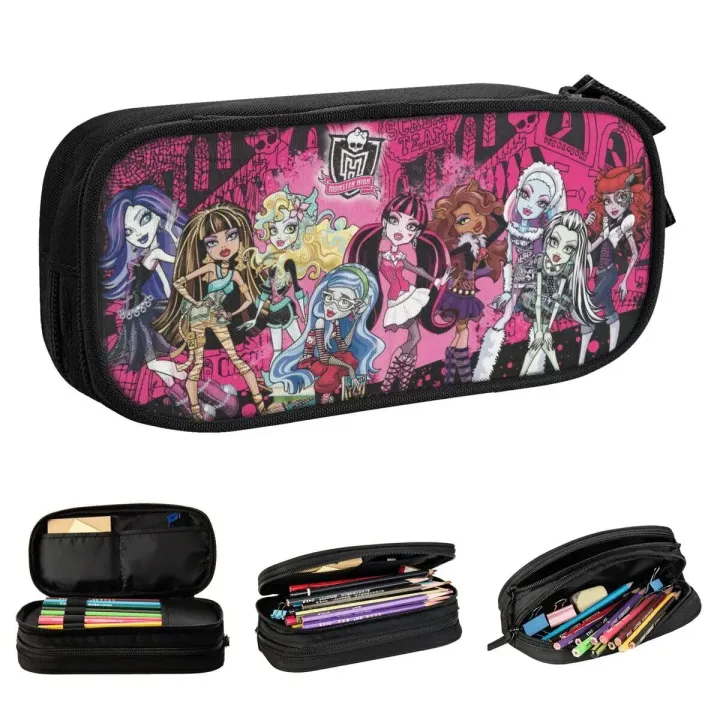 Fun Monster High Collage Pencil Case Anime Pencilcases Pen Holder for Student Big Capacity Bag Office Zipper Accessories