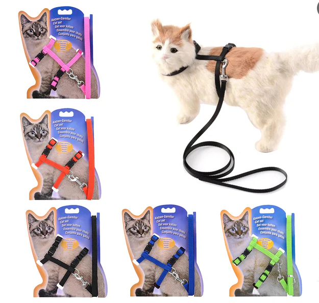 Generic Nylon Pet Cat Kitten Adjustable Harness Lead Leash Collar Belt Safety Rope - multicolour