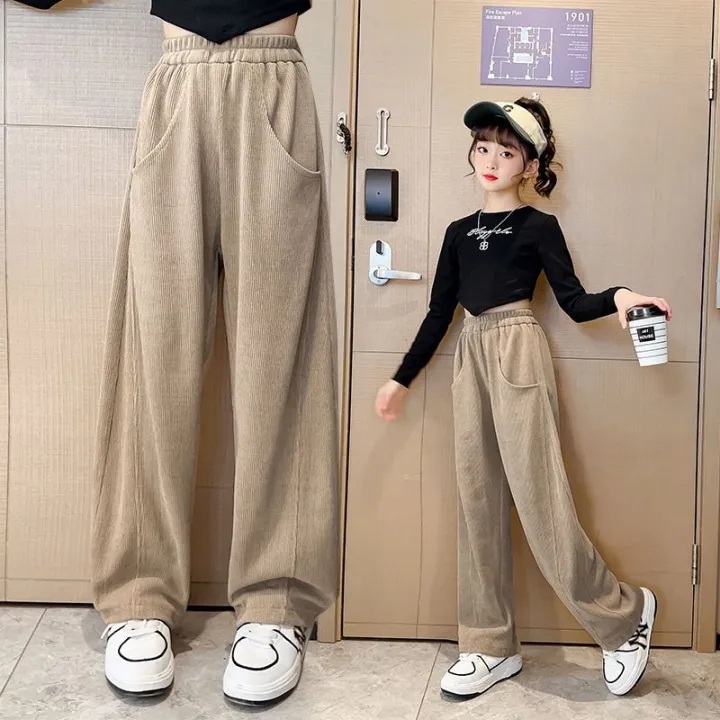 Girls Pants Spring Autumn Korean Style Cotton Boy Girl Loose Pants Cargo Pants Children's Casual Sports Pants 5-14Y