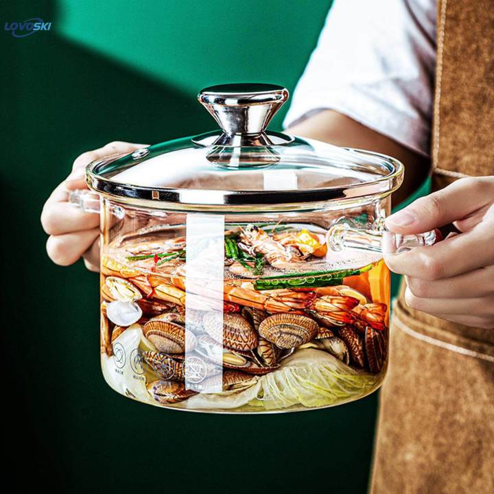 Glass Cooking Pot Kitchen Glass Cookware Simmer Pot for Tea Noodle Milk 1.3L