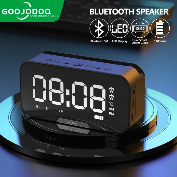 GOOJODOQ Wireless LED Bluetooth Speaker Smart Alarm Clock Portable Mini Super Bass Stereo Hands-free Calling Mirror Screen