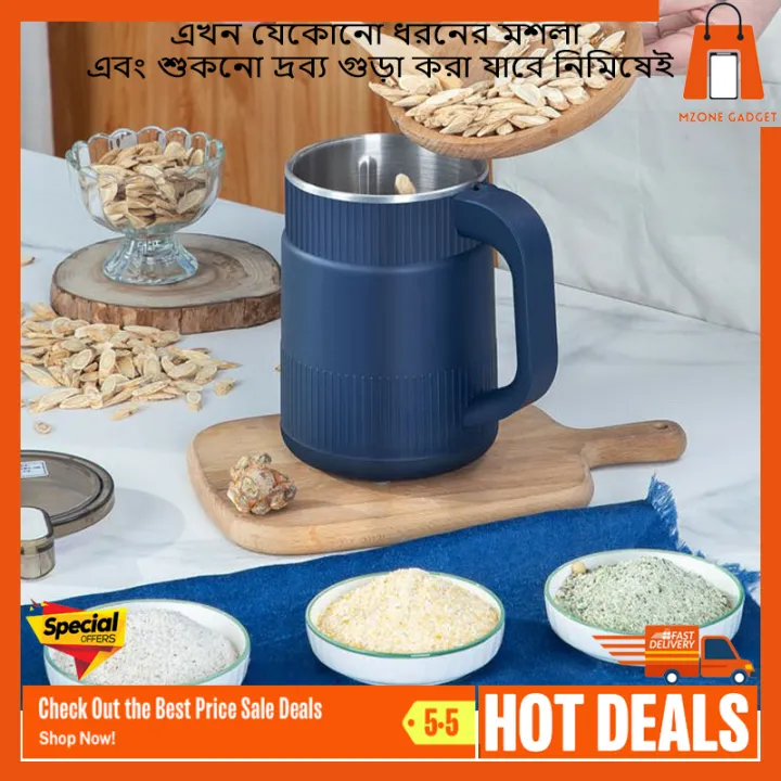 Grinder Household Small Powder Grinding Machine, Electric Mini Spice Grinder Add 5 Blades 304 Stainless Steel Grinding Fine Powder for All Kinds of Grains, Condiments, Coffee Beans (Blue)