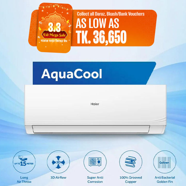 ![Haier 1 Ton AquaCool Non-Inverter AC [HSU-12TurboAqua:(FIX)(Pro)] with Free Delivery.](https://img.drz.lazcdn.com/static/bd/p/af3b8e1fc607db4aa6c2ca15991a1d2e.png_120x120q80.png)