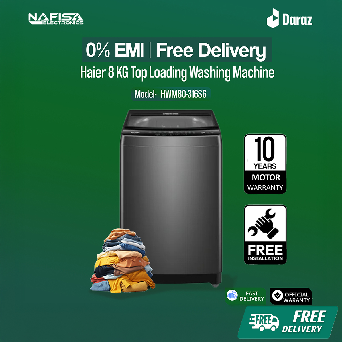 Haier 8 KG Top Loading Washing Machine/air dry/fresh air system/near zero water pressure/NZP (HWM80-316S6)