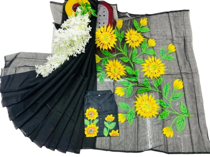 half silk sharee hand print couple set