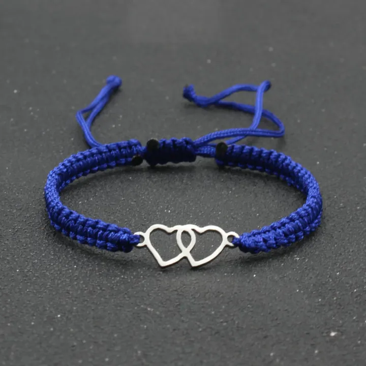 Handwoven Couple Bracelet Romantic Red Double Heart Heart Bracelet Stainless Steel Jewelry Gift Handmade Red String Bracelet for Couples Jewelry Friendship Gift Anniversary Present Relationship Symbol