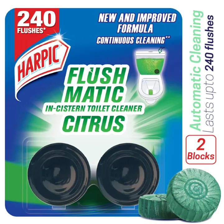 Harpic Flushmatic Citrus In Cistern Toilet Cleaner Blocks (50g X 2pcs) Automatic Cleaning with Every Flush