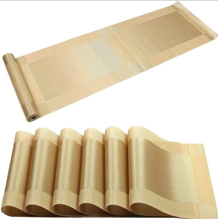 Heat-Resistant PVC Placemat for Dining Table Woven Vinyl Stain Resistant Table Mats Easy to Clean 8+1=9 pc set