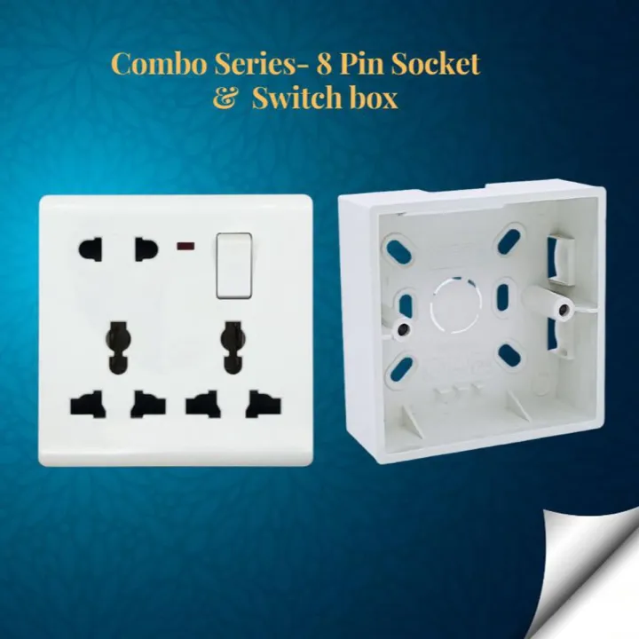 Heavy Duty Universal 8 pin Multi Socket (220V/240V 16A ) With Free MK Gang Back Cover