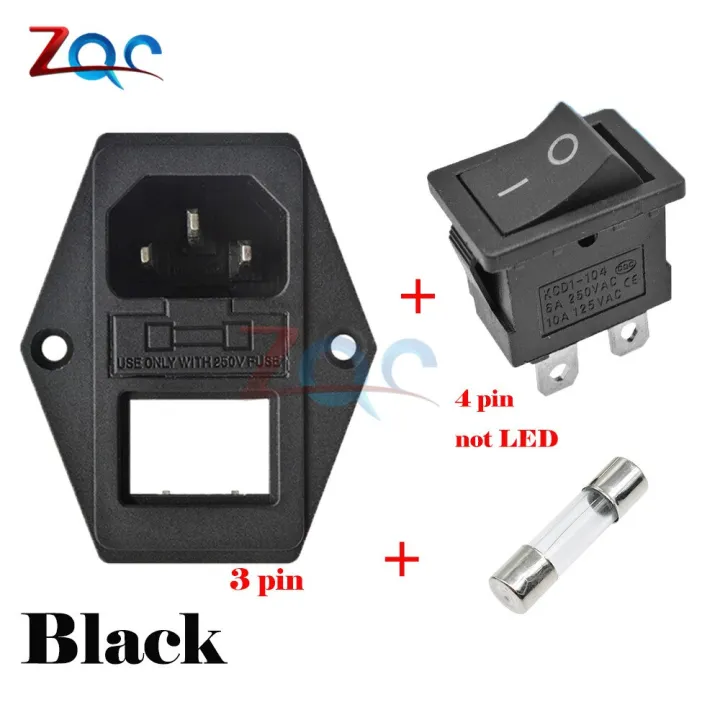 【Hengli jewelry story】(NEW)AC 10A 250V 4pin Rocker Switch Fused IEC320 C14 Male Inlet Cord Power Socket Switch Connector 3pin Plug Connector with 10A Fuse
