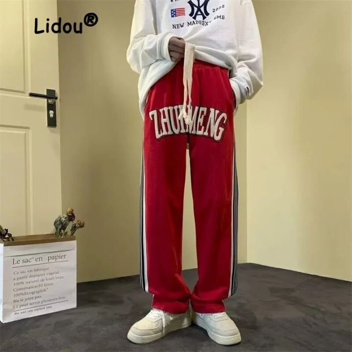 High Street Color Block Printing Letter Men's Sweat Pants Casual Classic Waist Drawstring Pocket Sweatpants Male Trousers