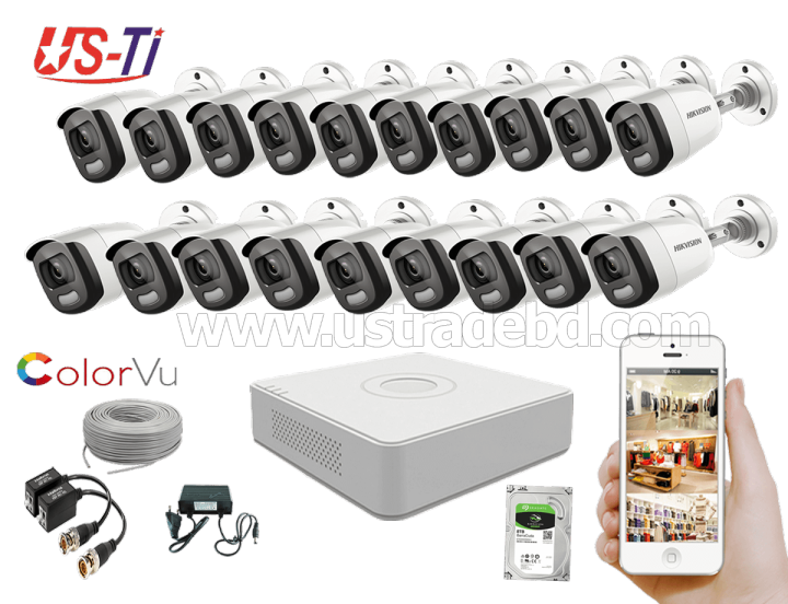 HIKVISION 2MP Full HD 19PCs 24 Hours Colour CCTV Camera Full Package System