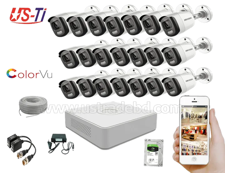 HIKVISION 2MP Full HD 20PCs 24 Hours Colour CCTV Camera Full Package System