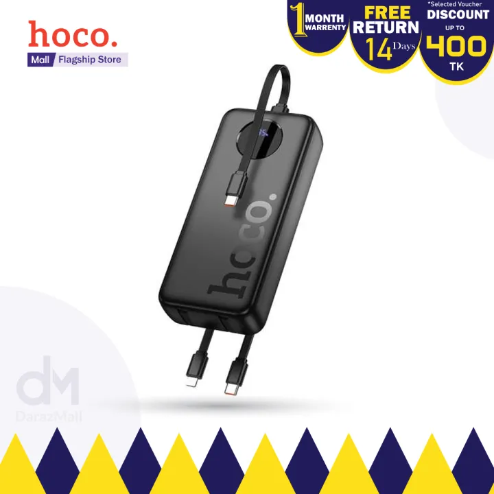 HOCO J132A 22.5W+PD20W Portable High Capacity Fast Charging 20000mAh Power Bank With 3 Cables - Black