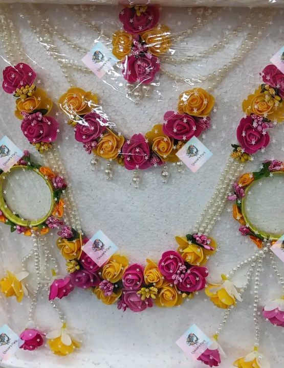 Holud ornaments jewellery set artificial flower holud gohona 7 pieces set