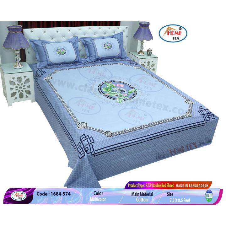Home Tex King Size Cotton Bed Sheet (Panel Design)