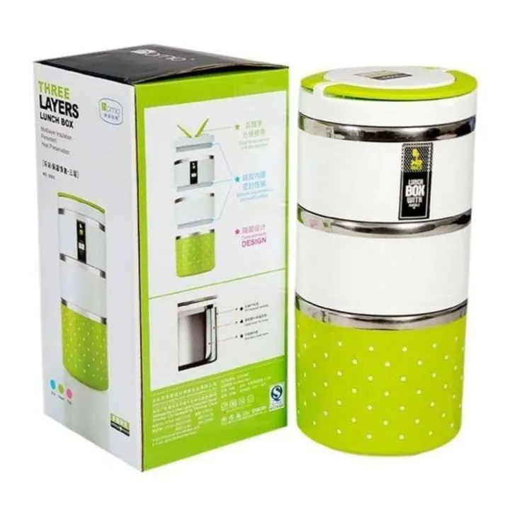Homio 3 Layer Hotpot Lunch Box - Green and White