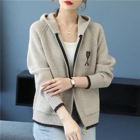 Hooded Coat Zipper Cardigan Sweater Women's Autumn and Winter Embroidered Top 2022 Spring Fashion Sweater Knitwear