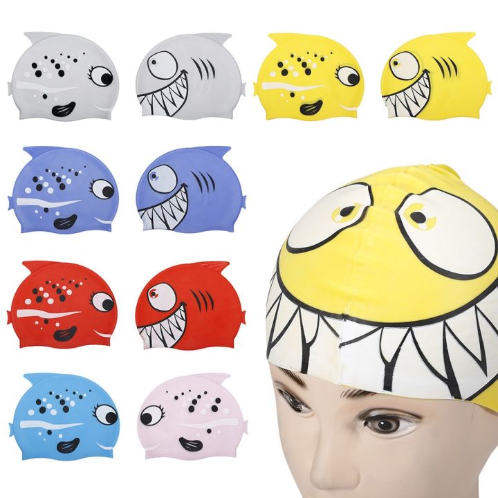 Hot Children's Swimming Cap Cartoon Fish Shape Silica Gel Silicon Waterproof Protect Ear Shark Shape Swim Pool Hat Kids Caps