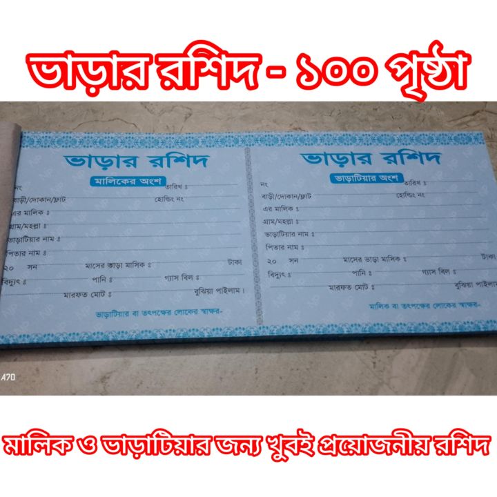 House Rent Receipt Book Regular Memo Pad BLANK 100 Pages