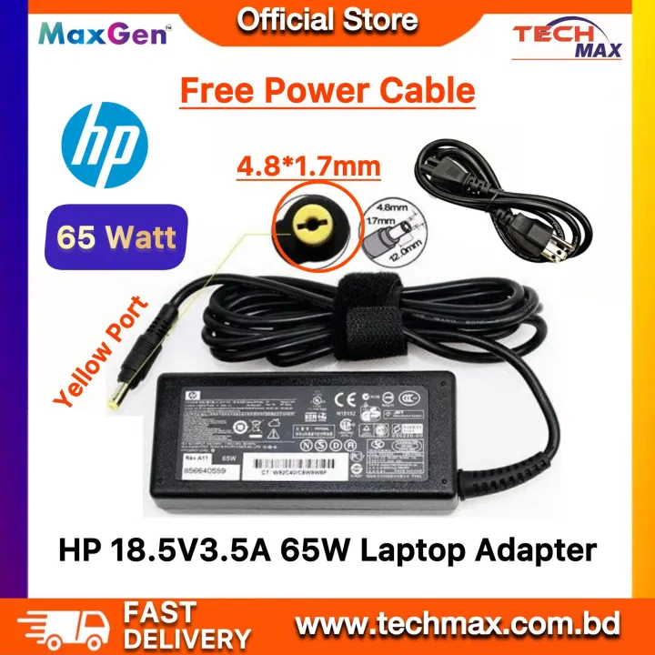HP Laptop Adapter For HP V3000 V3700 6520S 6720S DV1000 (4.8*1.7mm) 65W Adapter Compaq 610 615 620 621 530 510 550 Series Yellow Pin