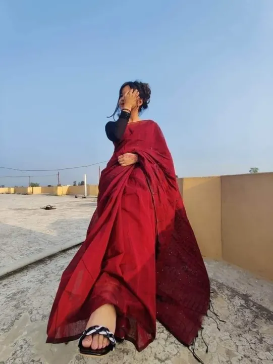 Fashionable Tangail tat Half Silk Flat Color Chumki Saree for Women