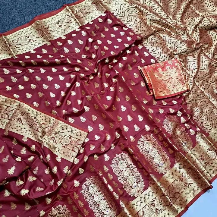 ব্লাউজ পিস ছাড়া মহিলাদের জন্য সফট সিল্ক মেরুন কালার কাতান শাড়ি