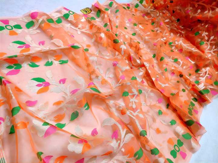 অরিজিনাল ইন্ডিয়ান অরগাঞ্জা সিল্ক শাড়ী ১৪ হাত শাড়ী রানিং ব্লাউজ পিস আছে