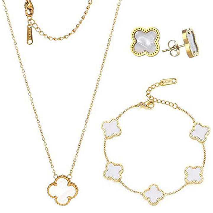 1Set Light Luxury Four Leaf Clover Pendant Jewelry Set Fashion Trendy Necklace Bracelet Earring For Women Simple Jewelry CHAINI