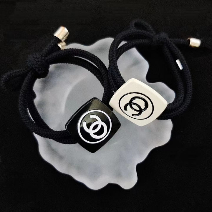 【Guaranteed to look good】 Classic Style Head Rope Square Chanel-Style Powder Double Letter Hair Ring Double Layer Hair Accessories Simple All-Match