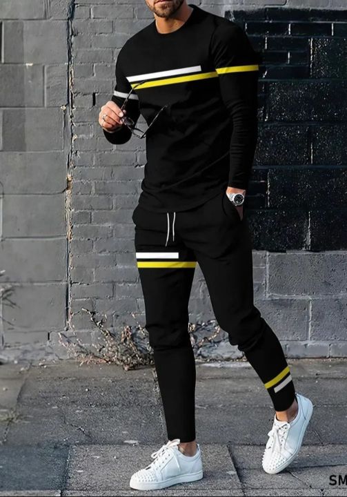 স্টাইলিশ পুরুষদের জন্য ফুল হাতা টি-শার্ট এবং ট্রাউজার কম্বো সেট