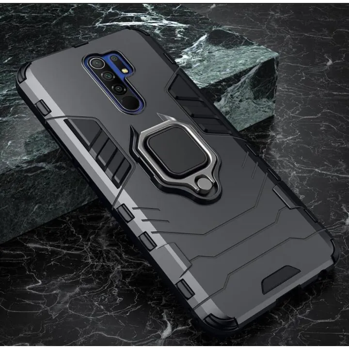 icasecover for Xiaomi POCO M2/POCO M2 Reloaded Hard Case Hybrid Shockproof Car Magnetic Ring Buckle Stand Back Cover