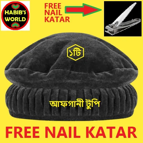 Imaging Cotton Black Afghani Kashmiri Pakol Caps and Hats 1 Pis (Advanced Quality) Tupi with Gift Nail Katar