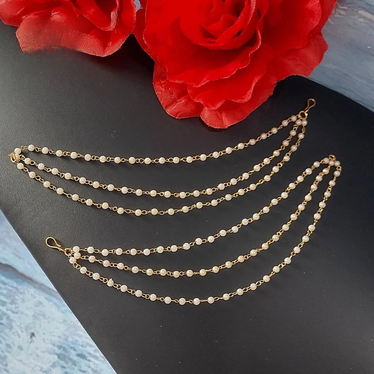 Indian Bollywood Gold Plated Kaan Chain Bahubali Jhumki Earrings Tana/Pearl Ear Chain, Ear Support For Women/Girls - Add A Touch Of Glamour