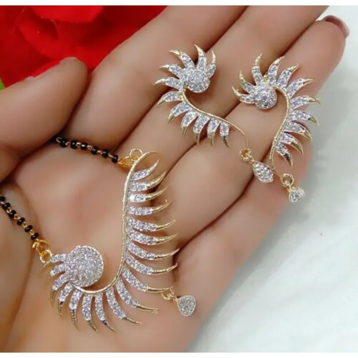 Indian Mangalautra Necklace White Stone Drop Gold Plated AD Bride Star Wedding