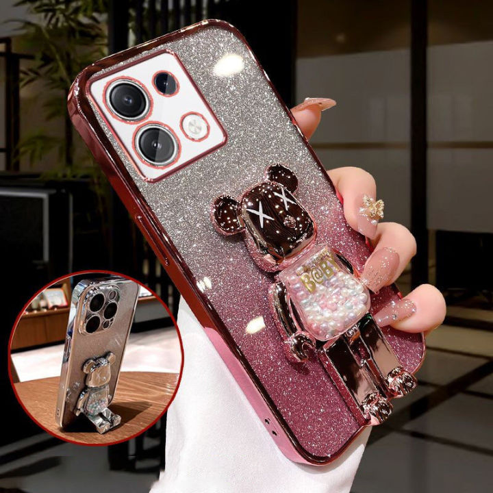 Infinix Note 40 4G / Note 40 Pro 4G 5G / Note 40 Pro Plus 5G Casing case with Cartoon 3D Bear Stand Luxury Slim Gradient Plating Glitter Girls Stylish Back Cover Clear Soft Silicone Protective Cases Pouch