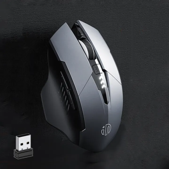 Inphic A1 6 Keys 1000/1200/1600 DPI Home Gaming Wireless Mechanical Mouse, Colour: Gray Wireless+Bluetooth 4.0+Bluetooth 5.0