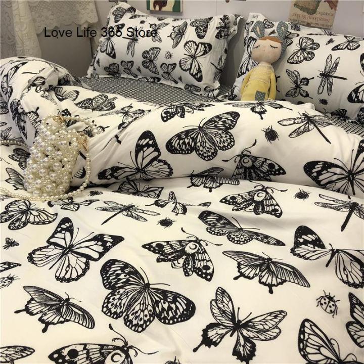 Ins Style Fashion Butterfly Bedding Set For Girls Boys Double Size Flat Sheet Duvet Cover Pillowcase Bed Linen Home Textile