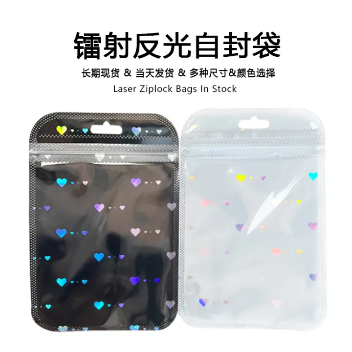 Ins Wind Plastic Bag in Stock Window Gift Bag Universal Design Packaging Bag Laser Packaging Bag Bone Strip Ziplock Bag