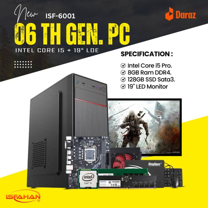 Intel Core i5 6th Gen. (RAM 8GB DDR4) (SSD 128GB or HDD 500GB) (19" LED MONITOR) Windows 10 Full Desktop Computer