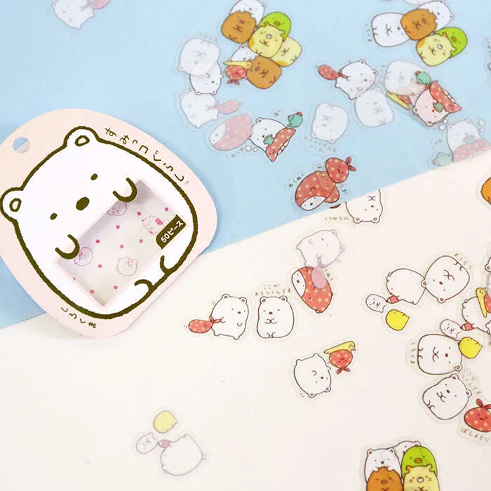 Japanese Corner Cartoon Animal Transparent PVC Pack Handheld Tent DIY Gupan Decorative Sticker with Over 50 Styles