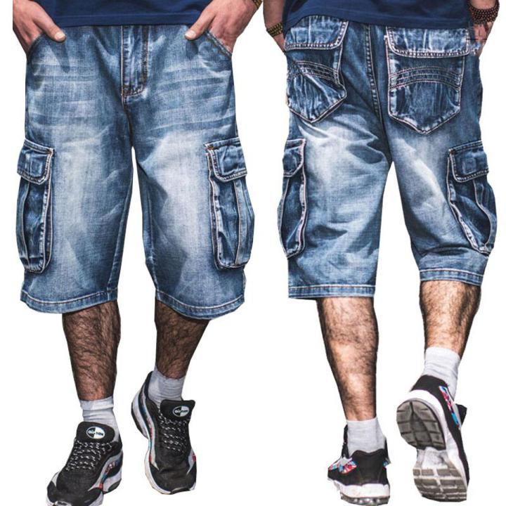 Jeans Men Summer Modis Multi-Pocket Men's Blue Denim Shorts Streetwear Loose Large Size Straight Denim Shorts Size 30-46