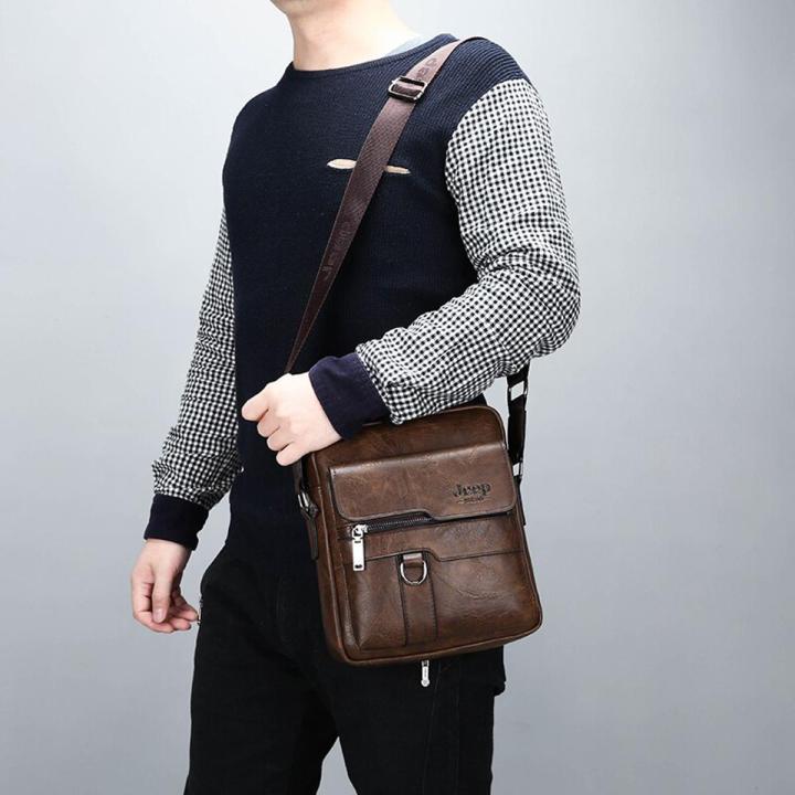 JEEP BULUO Brand Leather Men's Shoulder Crossbody Bags 10 x 9Inch Ipad Office Messenger Bag for Men Business Handbag Male Sling Bag (265665837)