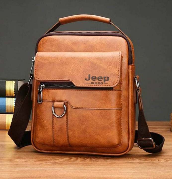 JEEP BULUO Brand Leather Men's Shoulder Crossbody Bags 9.7Inch Ipad Office Messenger Bag for Men Business Handbag Male Sling Bag