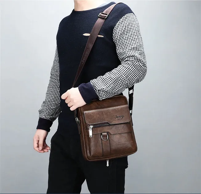 JEEP BULUO Luxury Brand Men Messenger Bags Crossbody Business Casual Handbag Male Spliter Leather Shoulder Bag Large Capacity