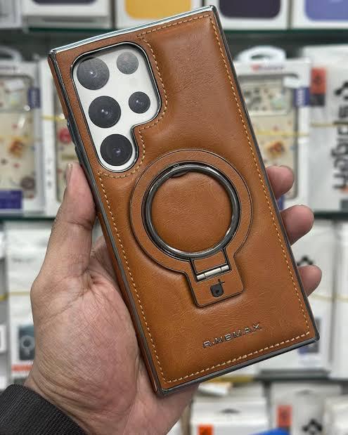 Jinduka Leather phone PU case with luxury magnetic support ring for Samsung Galaxy S25 Ultra, S24 Ultra, S23 Ultra/ Magsafe, wireless charging, hollow logo