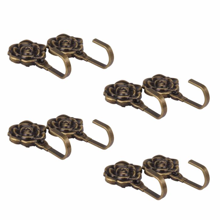 JOUYI 8Pcs Metal Rose Flower Curtain Tie Back Tieback Holders Wall Hooks Decor