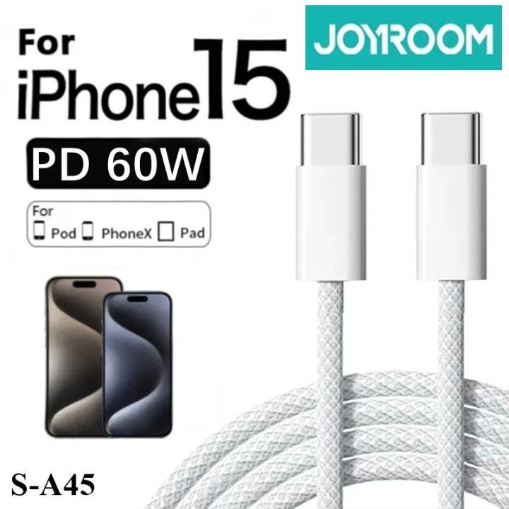 Joyroom 60W Type-C Cable For iPhone 15 Pro Max PD Fast Charging Cable for iPhone Charger Cable USB Data Line USB C Cable-1m