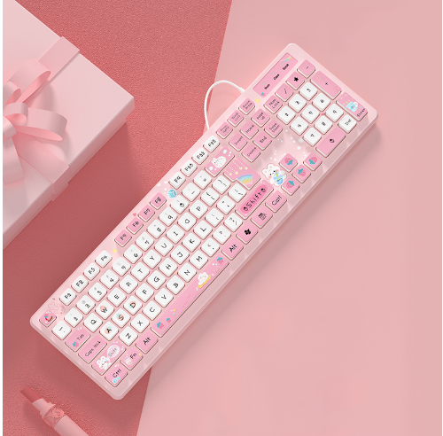 Kawaii wired keyboard milk tea rabbit cute pink cute chocolate wired keyboard girls keyboard creative coloring wireless keyboard