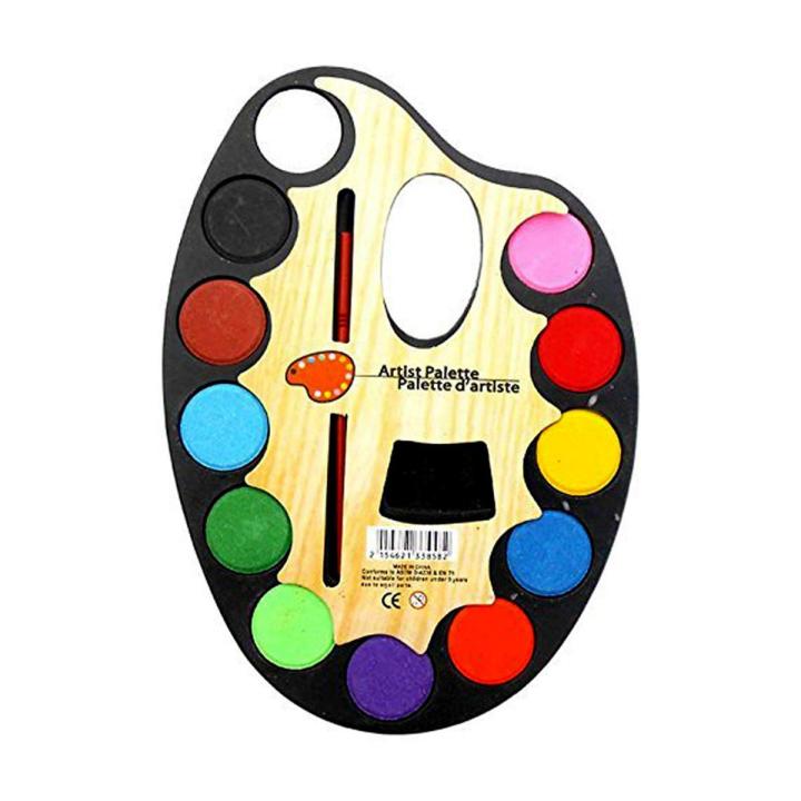 ...Kids Large Palette Water Color Set 12 Color and Artist Paint Brush (Big size)